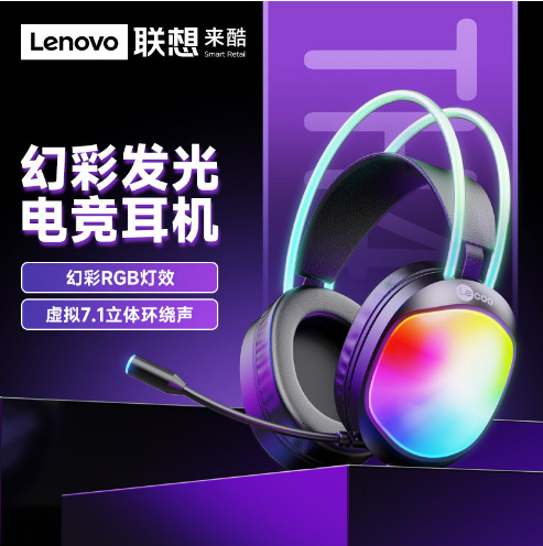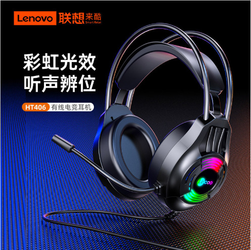 适用联想来酷HT406有线头戴式耳机USB带麦发光台式笔记本办公游戏