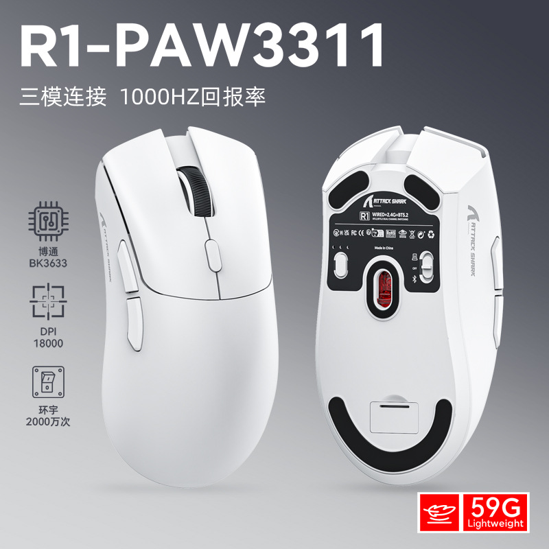 现货Attack Shark/攻击鲨R1轻量化3311电竞游戏三模蓝牙无线鼠标
