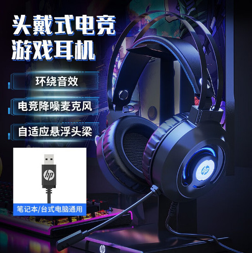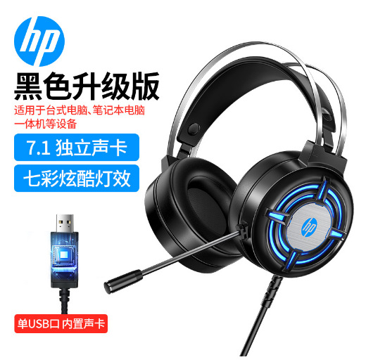 惠普H100有线游戏电竞发光头戴式耳机耳麦USB笔记本台式电脑7.1