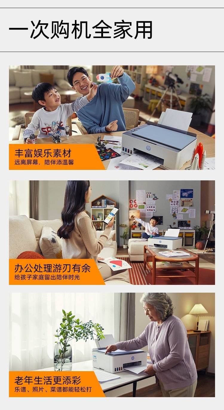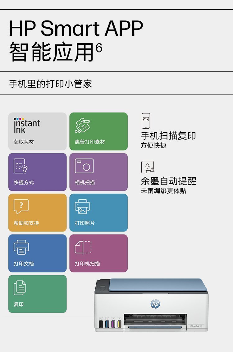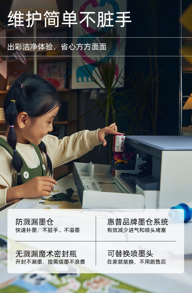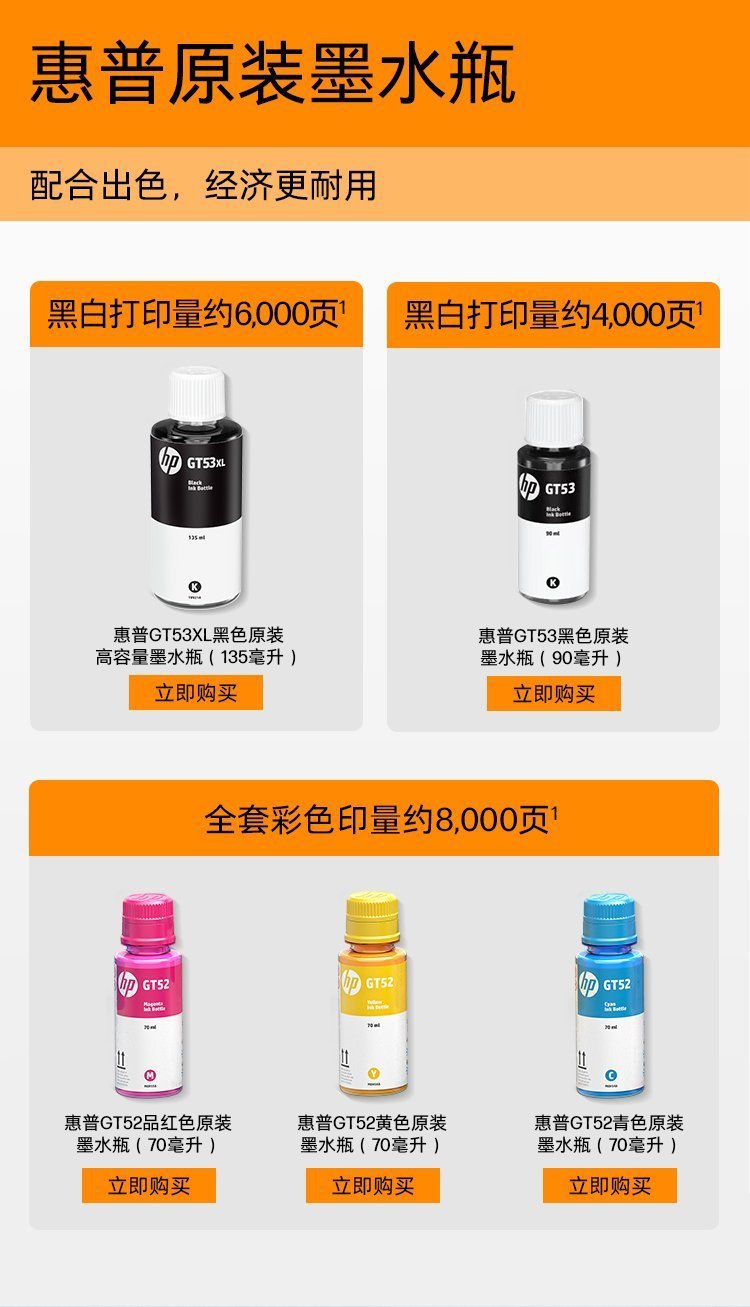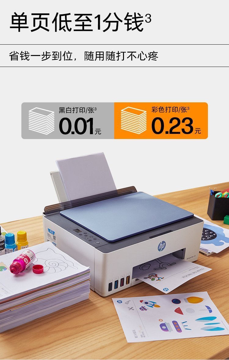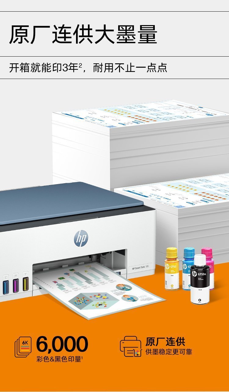 惠普Tank583扫描无线A4彩色连供加墨办公学生家用打印复印一体机