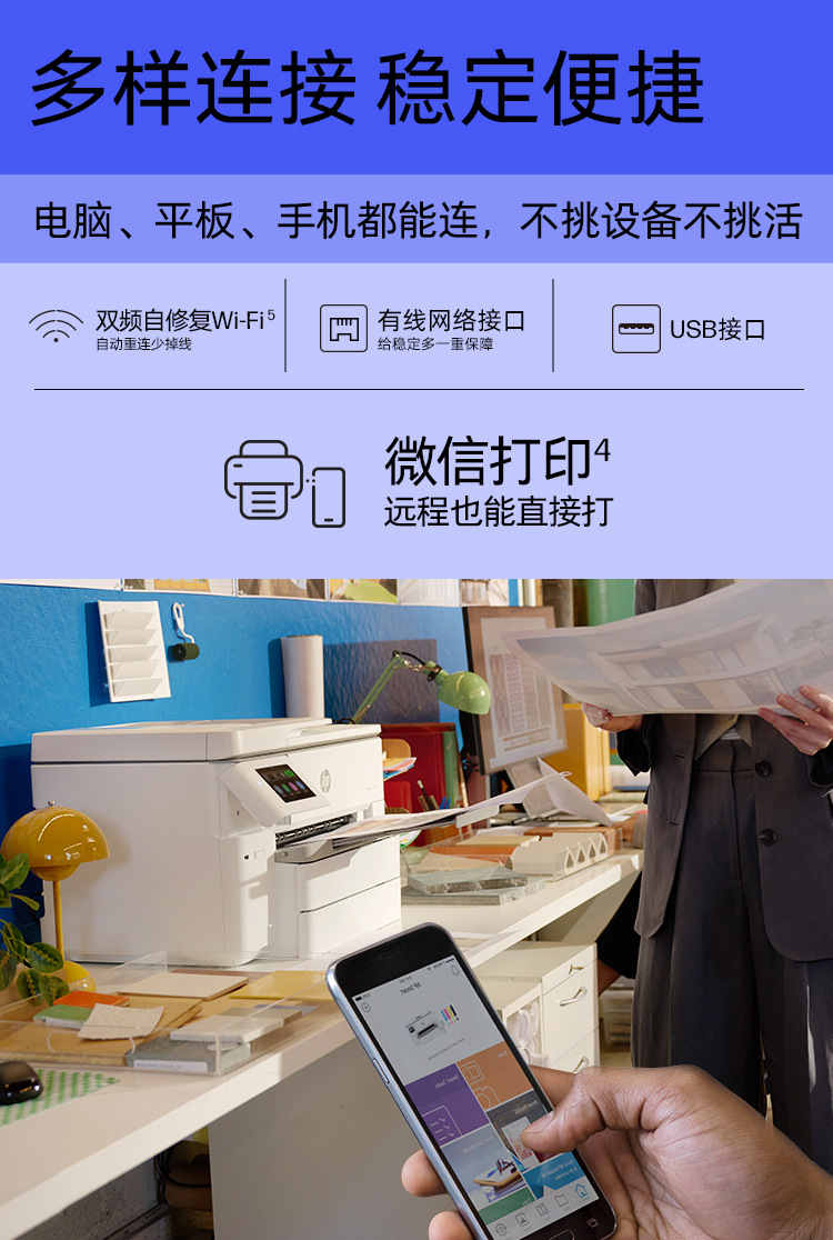 惠普9730/9720扫描无线双面a3a4彩色喷墨办公用打印复印一体机