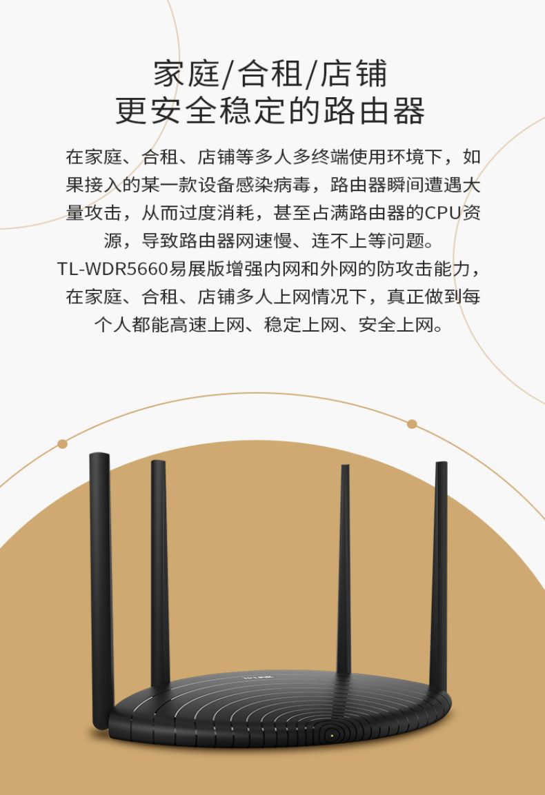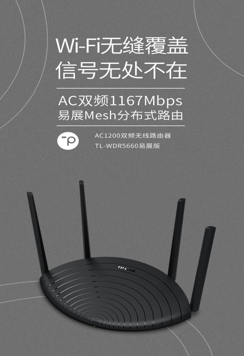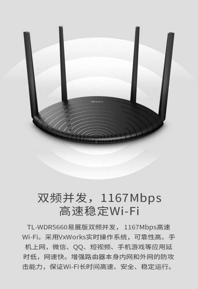 TP-LINK 1200M双频无线路由器5G家用高速穿墙TL-WDR5660易展版