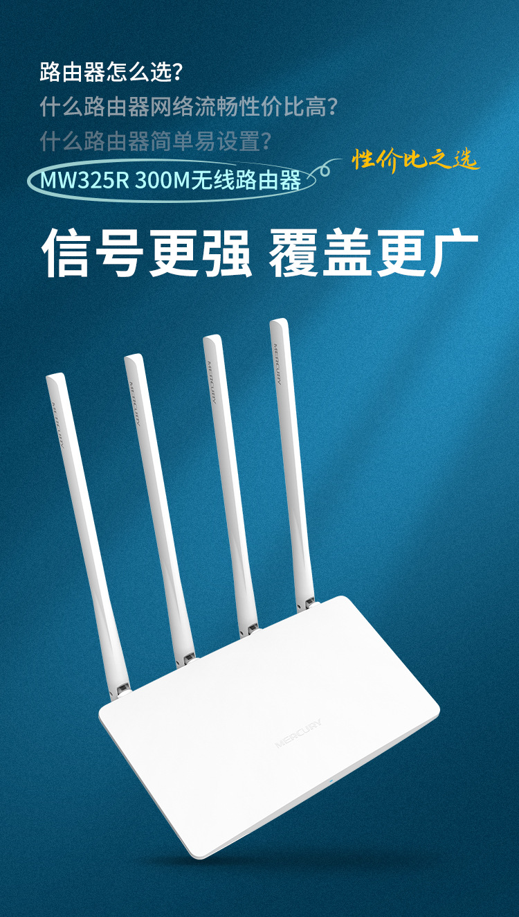 水星无线路由器MW325R家用WiFi高速穿墙300M四天线路由器