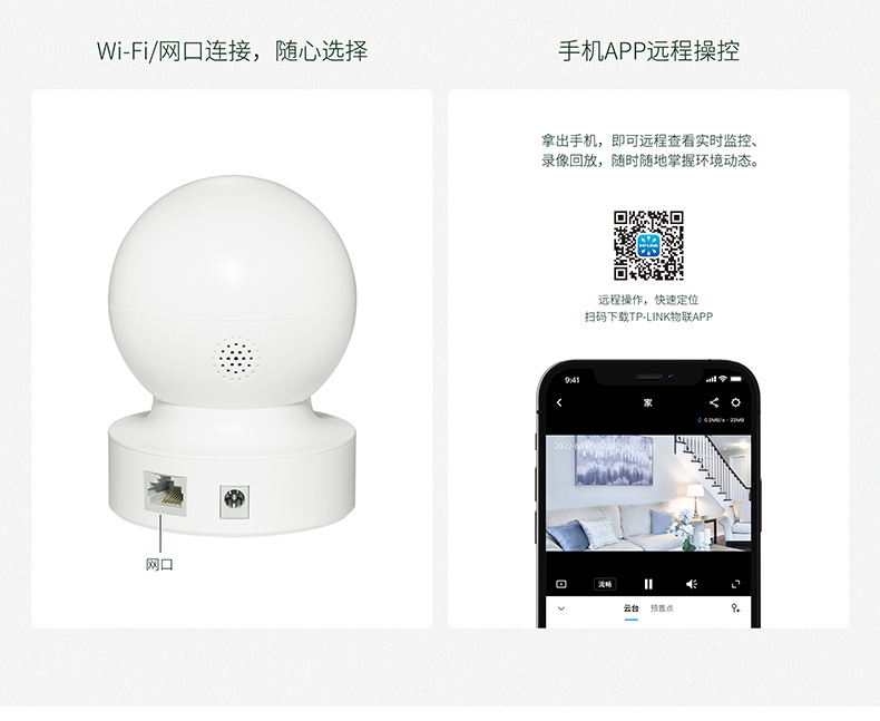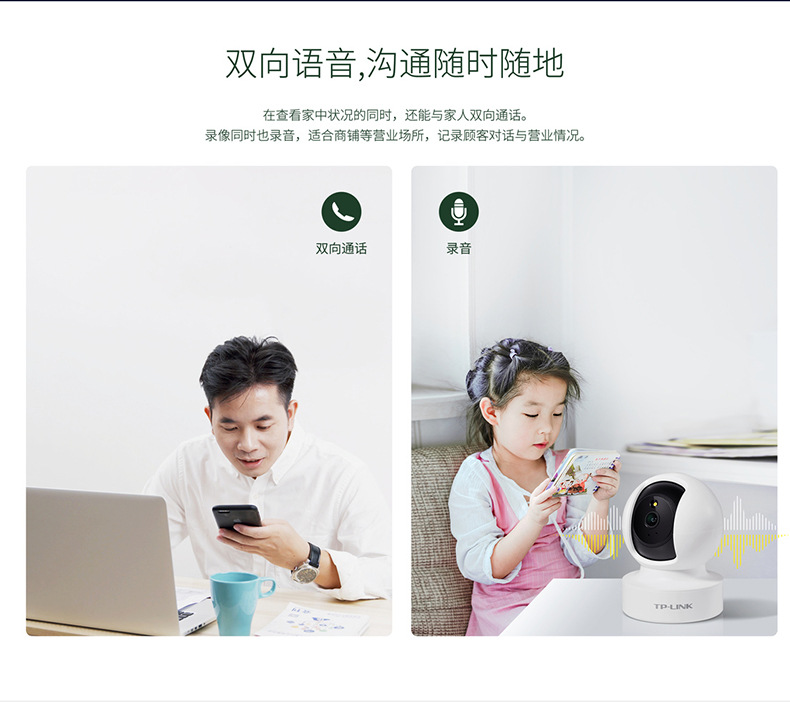 TP-LINK 300万400万500万全彩云台无线网络摄像头室内监控IPC45CL