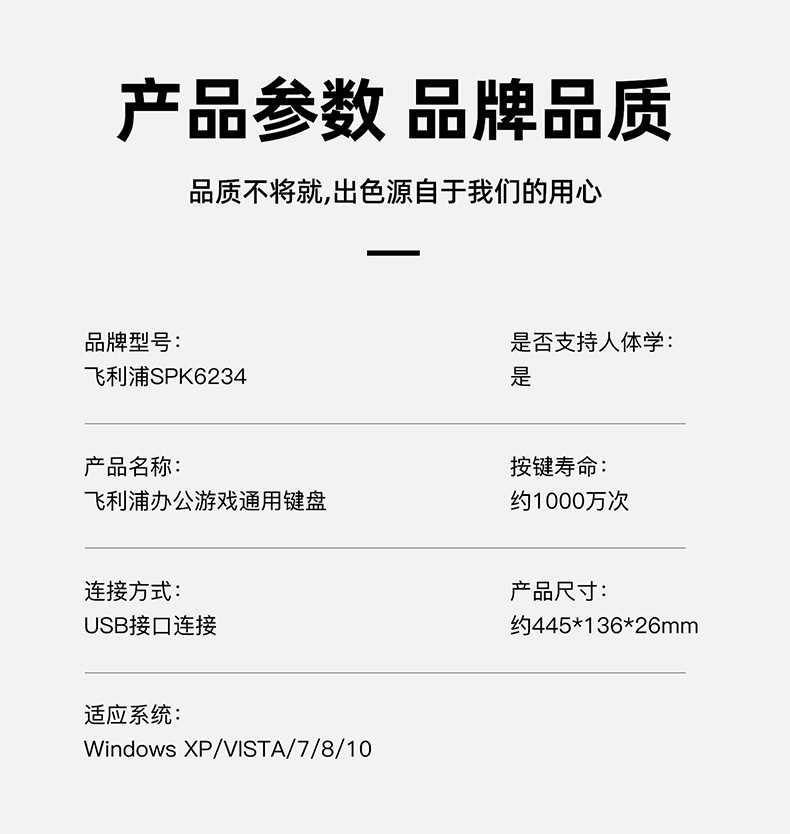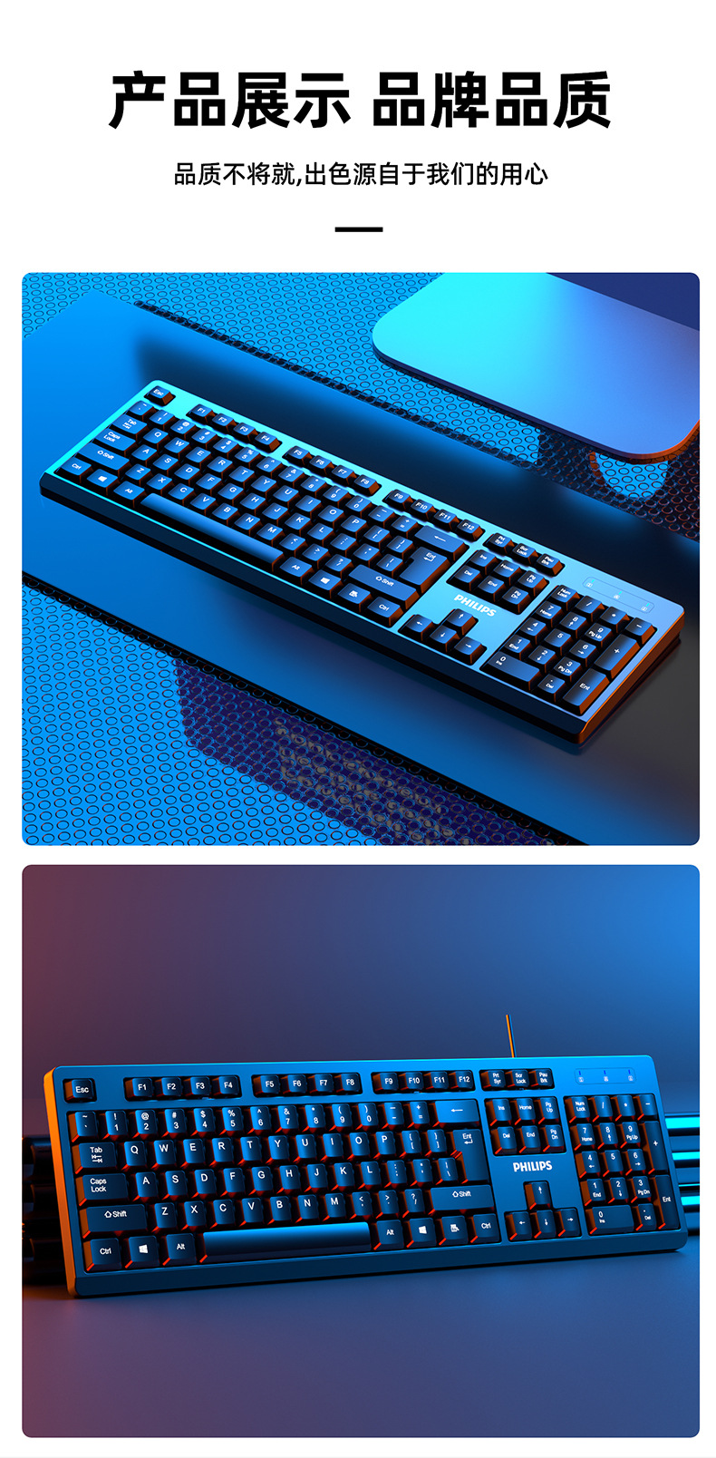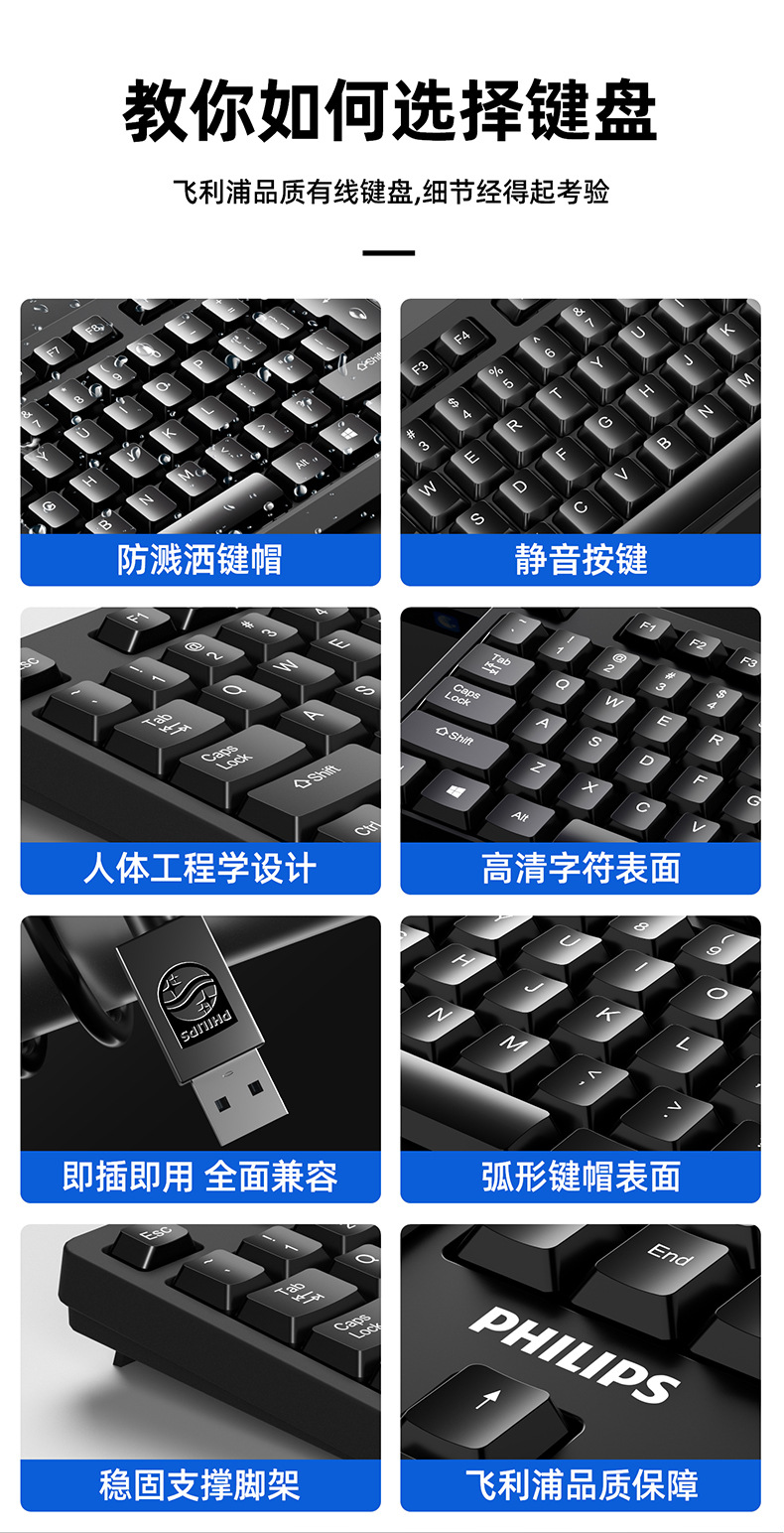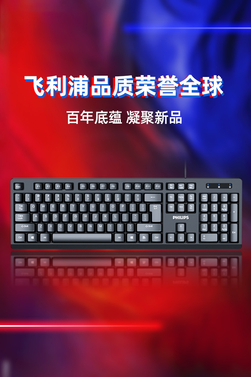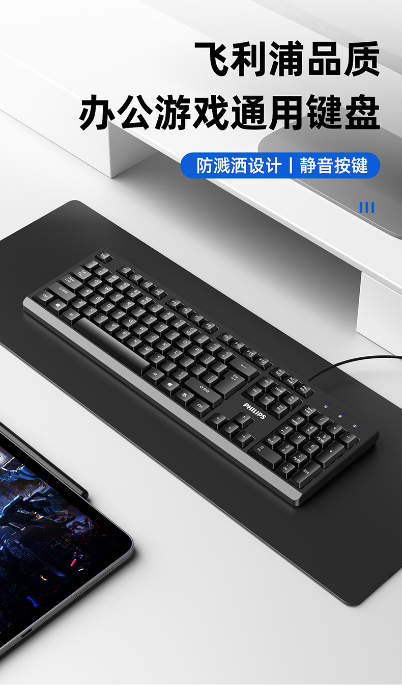 飞利浦K234笔记本台式机电脑usb有线键盘 家用游戏办公商务 键盘