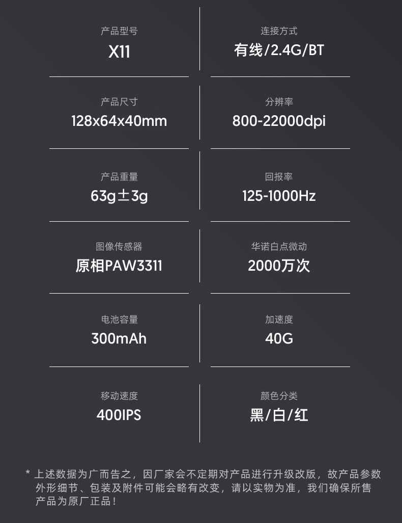 现货Attack Shark/攻击鲨X11 轻量化三模无线鼠标PAW3311充