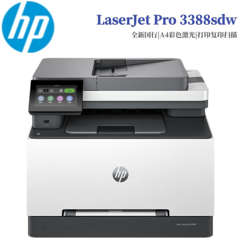 惠普3388sdw/3388fdw自动双面网络A4彩色激光办公打印复印一体机