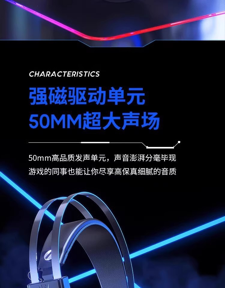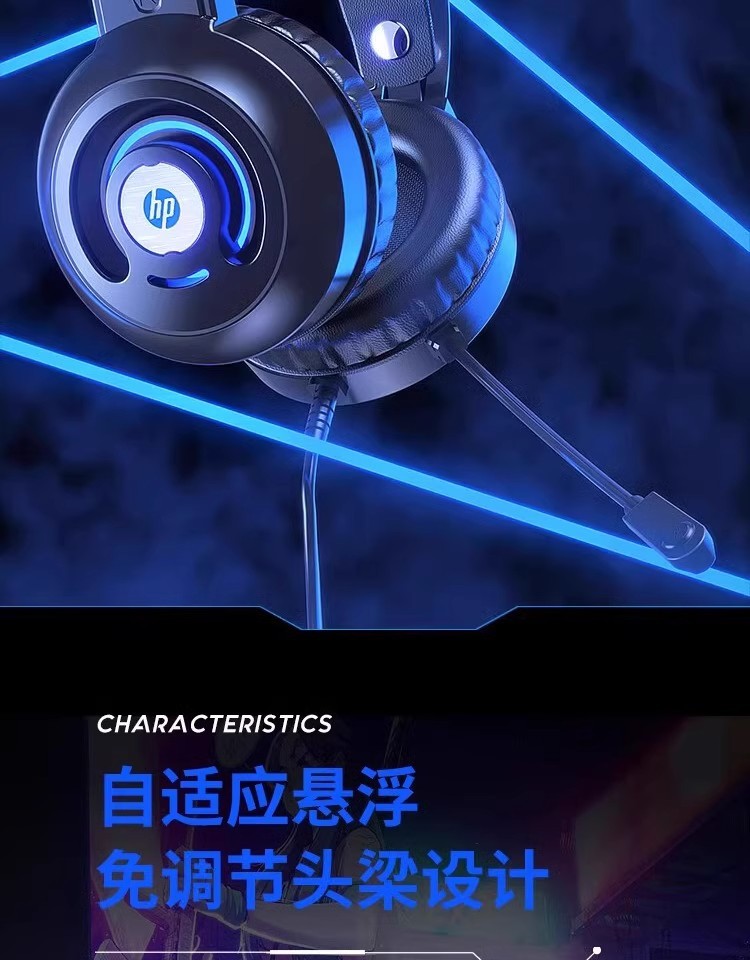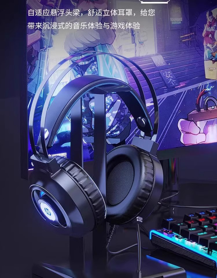 惠普H100有线游戏电竞发光头戴式耳机耳麦USB笔记本台式电脑7.1