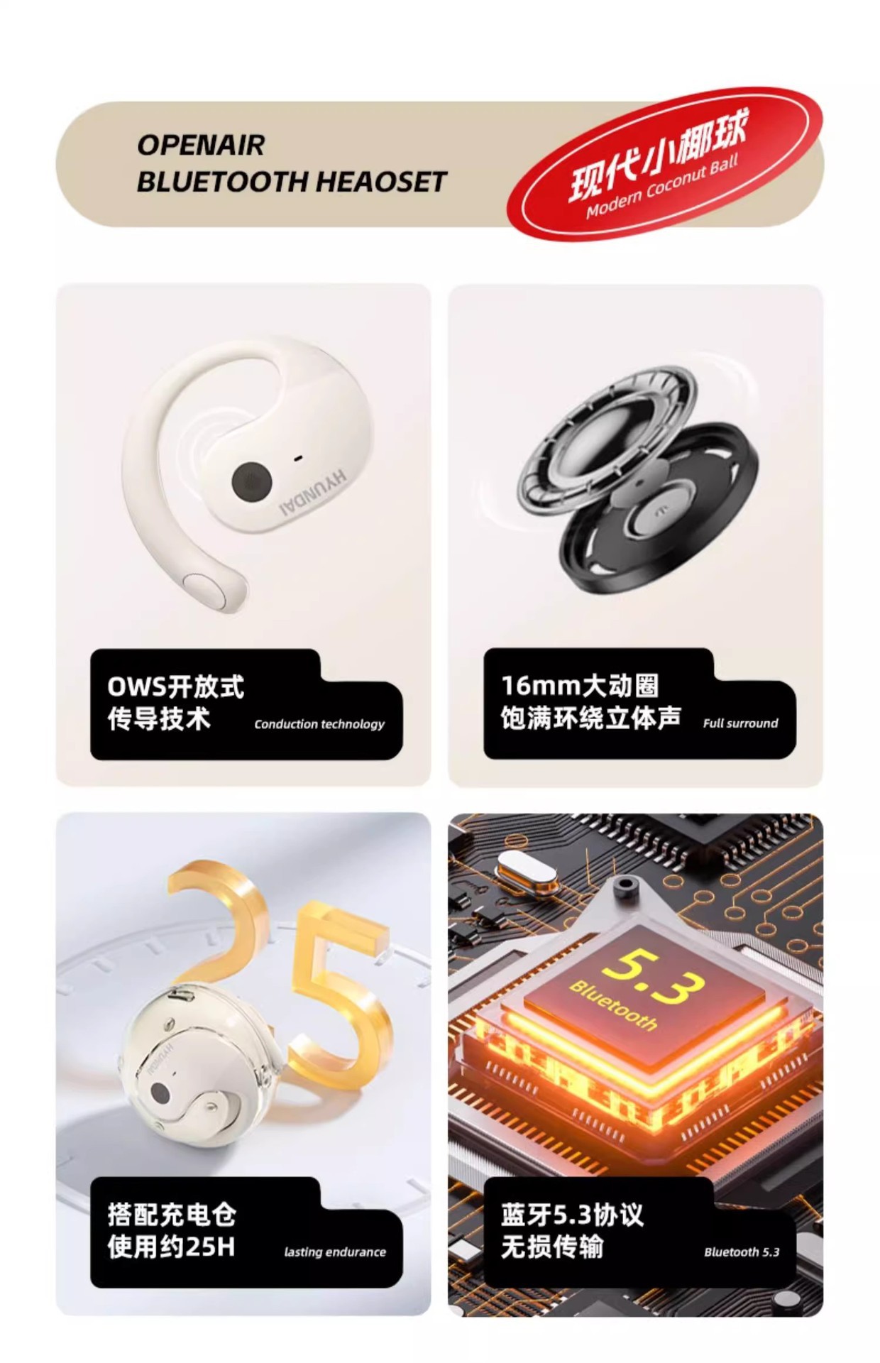 Thinkplus X15pro二代小椰球无线蓝牙耳挂式耳机运动降噪挂耳式