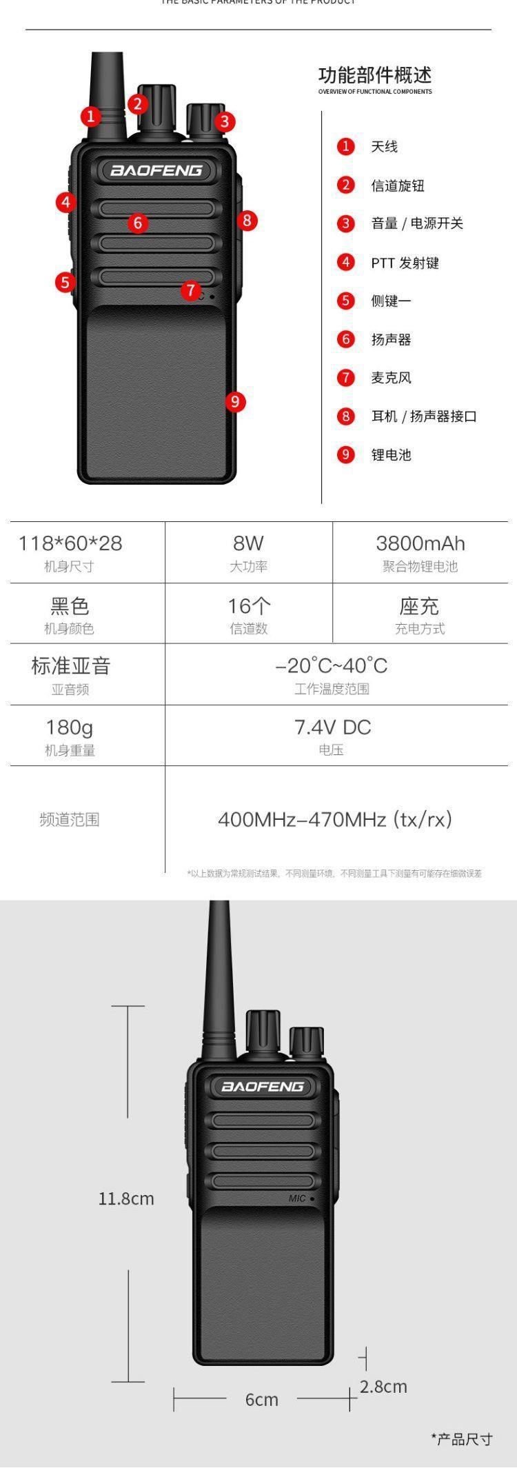 宝锋对讲机大功率户外工地小型无线民用远距离手台酒店展会餐厅用