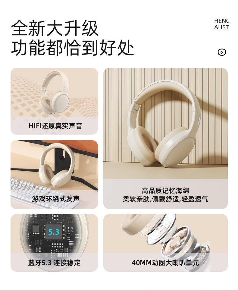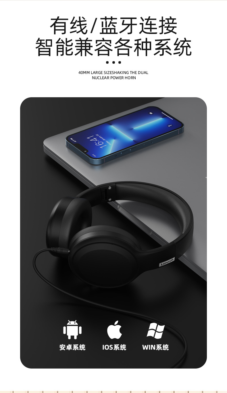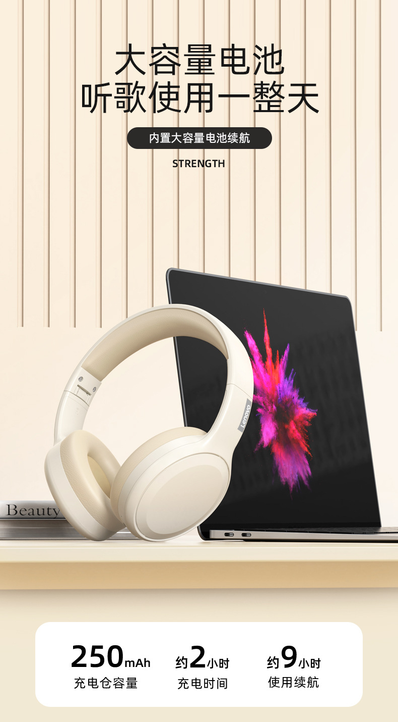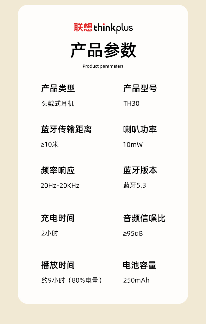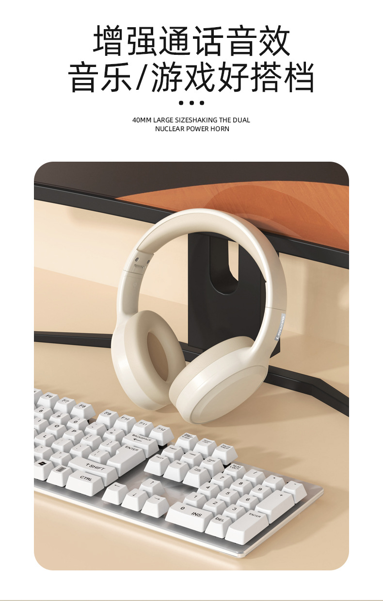 ThinkplusTH30真无线蓝牙耳机头戴电竞运动时尚高品质爆款