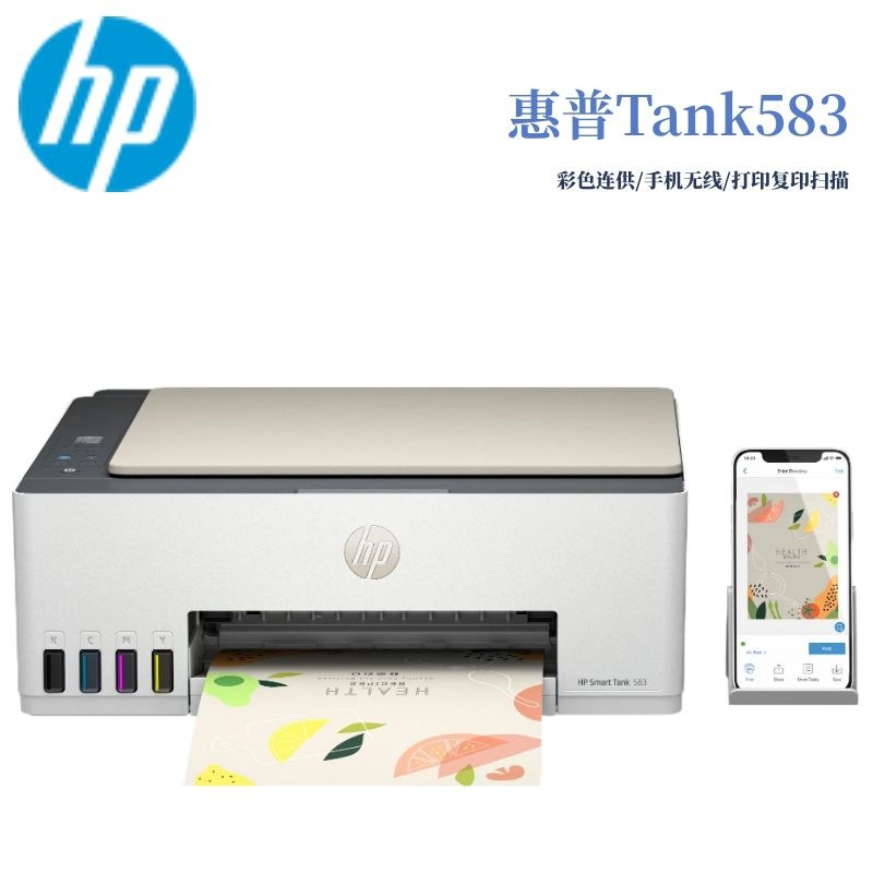 惠普Tank583扫描无线A4彩色连供加墨办公学生家用打印复印一体机