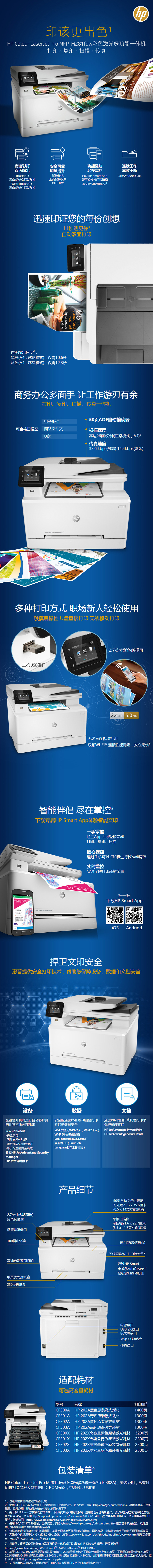 惠普M280nw/M281fdw自动双面无线A4彩色激光办公打印复印一体机