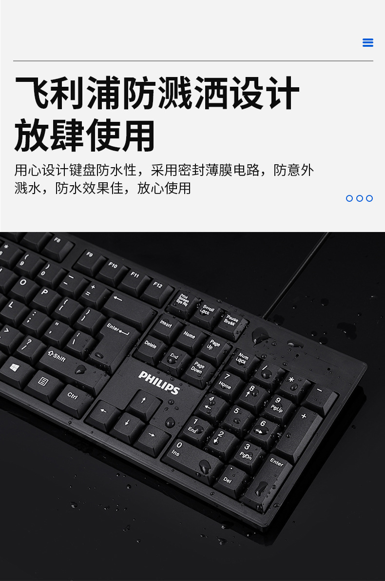 飞利浦SPT6234有线键盘鼠标套装一体机笔记本台机电脑商务usb键盘