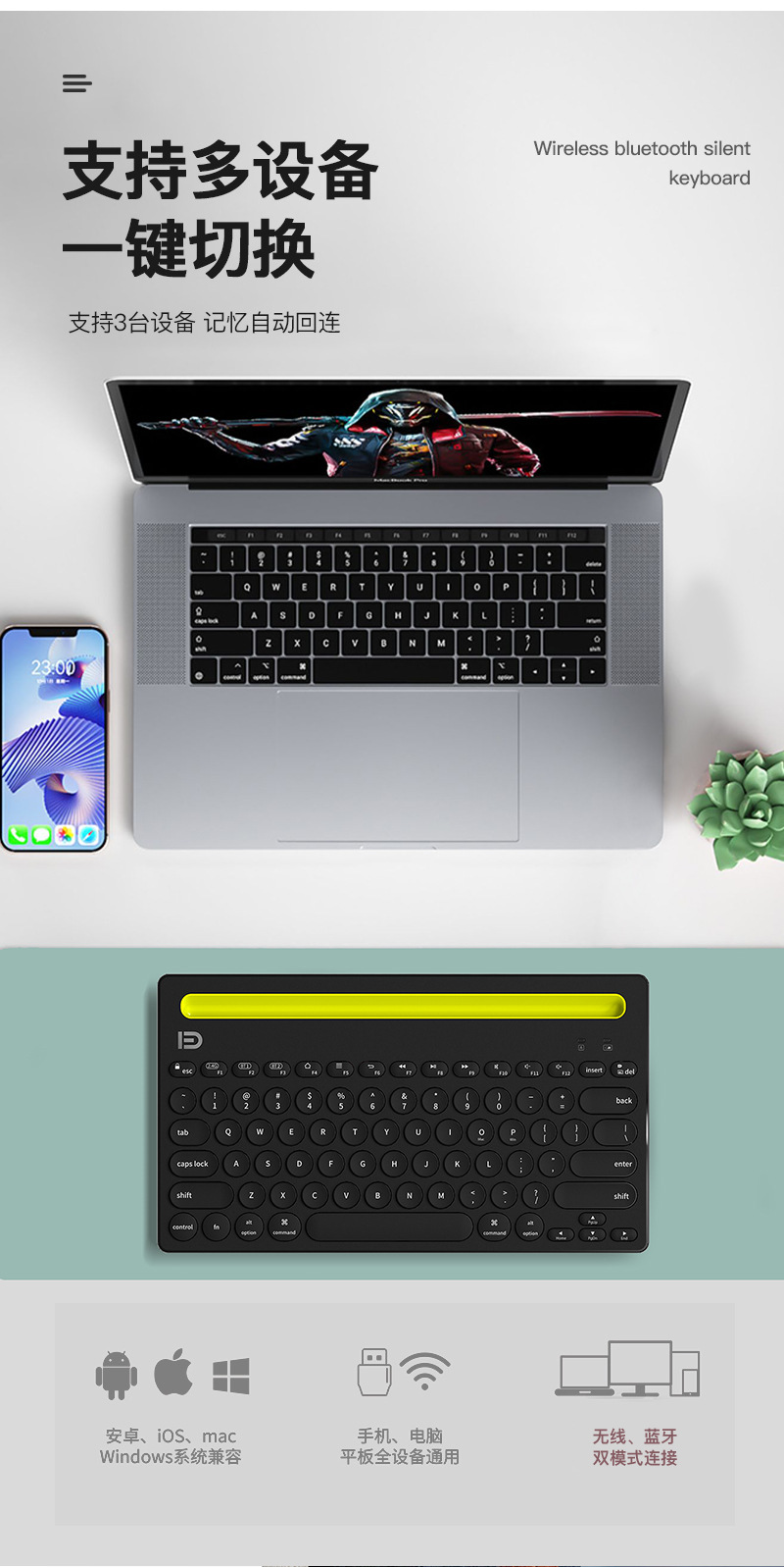 富德3381T无线蓝牙三模键盘办公圆点适用手机电脑平板ipadpro键盘