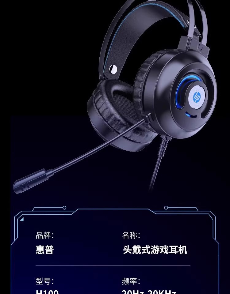 惠普H100有线游戏电竞发光头戴式耳机耳麦USB笔记本台式电脑7.1